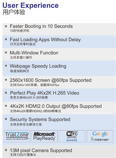 三大技术为瑞芯微独家技术。这为采用RK3288处理器的OEM品牌厂商提供了更为强大的技术壁垒与核心竞争力。