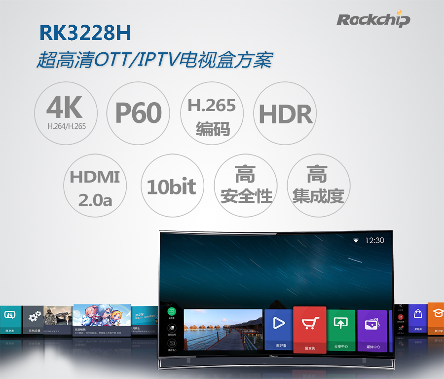 瑞芯微Rockchip作为中国联通的重要合作伙伴,将在本次秋交会期间推出高性能运营商盒子方案RK3228H。方案具有四大亮点: