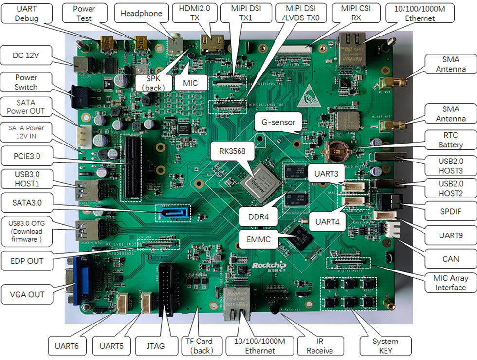 · RK3568 CPU为四核Cortex-A55,采用全新Arm v8.2-A架构,效能有效提升。采用22nm先进工艺,低功耗高性能