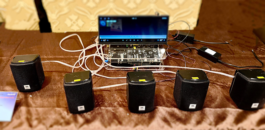 • 智能音频:推出面向电竞、家庭影院与商用场景的高品质音频方案,结合AI处理实现声音分离、空间声场与个性化调音。由 RK3588与RK2118协同工作的 AI多音轨分离技术,通过深度学习模型,能够从混合音频中高精度地分离出人声、吉他、贝斯、鼓点等独立音轨,输出高保真、低串音的高质量结果。