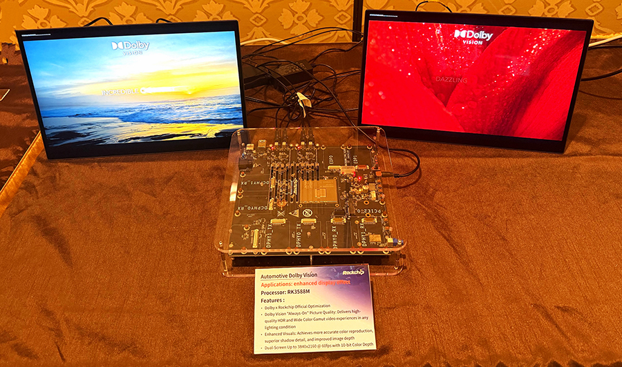 • 智能车载:展示了RK3588M系列车载领域的智能升级方案及落地成果包括CDC(Cockpit Domain Controller)座舱域控制器平台及Dolby Vision智能视觉增强方案。