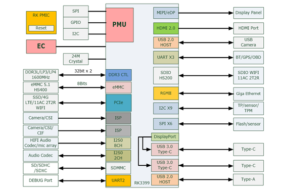 Based on RK3399 hardware system frame diagram, there are extremely abundant interfaces: