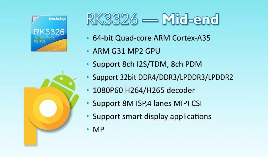 RK3326 is a new 64bit Quad-core mid-end tablet solution, which is extremely cost-effective and suitable for smart show products.