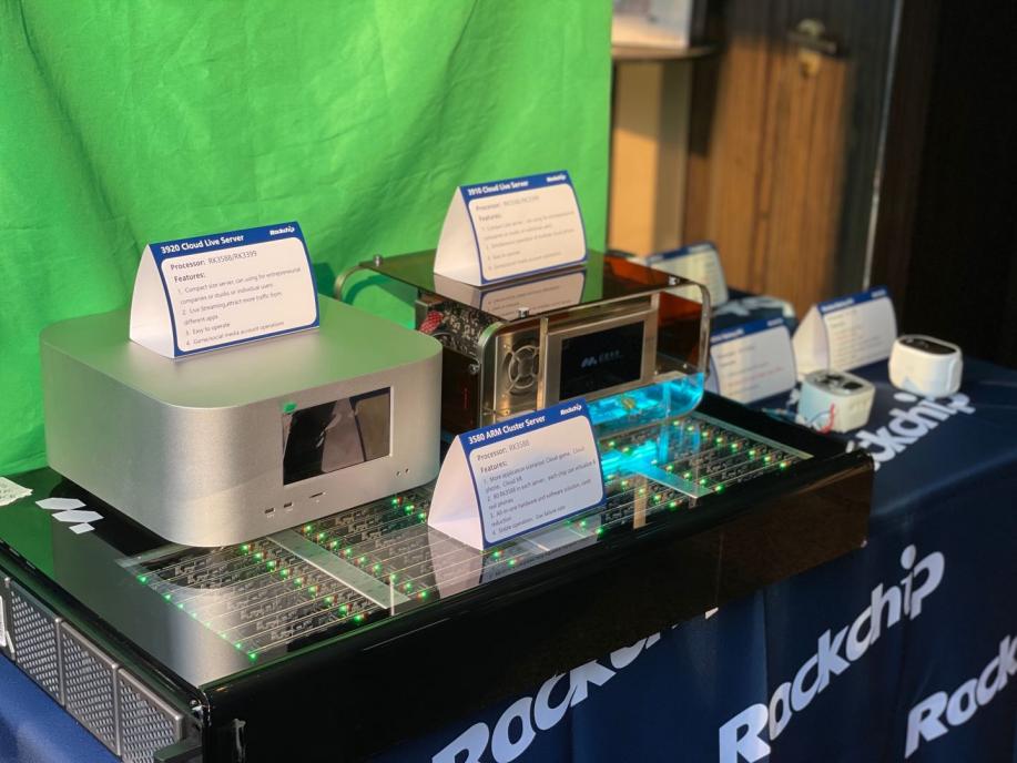 In the industry application exhibition area, Rockchip showed the edge computing equipment powered by RK3588, integrated 80 RK3588 chips, supported virtual 8 real phone numbers, and supported applications in cloud games, cloud mobile phones, cloud XR and other scenarios; it also showcased multi-screen live streaming devices that support simultaneous broadcasting on multiple platforms and various professional live streaming scenarios; in this area, Rockchip displayed a series of products covering industry, electric power, education, medical care, finance and retail devices. There are large quantities of categories in this exhibition area, including power concentrators, industrial tablet, medical tablet, bank desktop, edge computing server, etc.