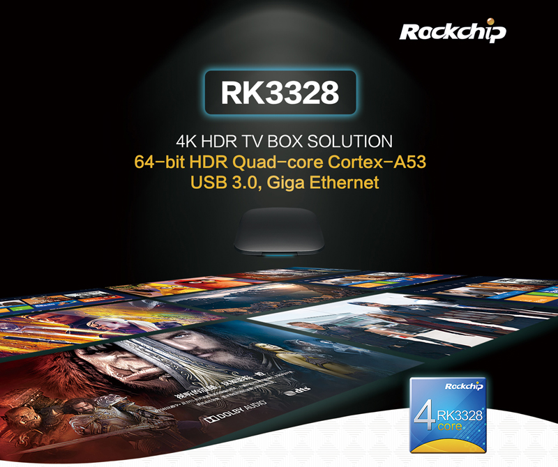 同时,用户对家庭娱乐产品有着越来越强烈的渴望,“家庭娱乐主机”概念将是盒子未来趋势,除可通过互联网观看更丰富的节目内容外,还可安装各种互联网业务应用使得电视具备了开展多种家庭娱乐业务的能力,如社交、购物、资讯、VR、游戏等。Rockchip提供的 RK3328方案将全面助力打造电视盒互联网生态,作为高端盒子的超优选择,可以支持4K高清视频,同时支持包括游戏、VR等其他高品质视频需求。