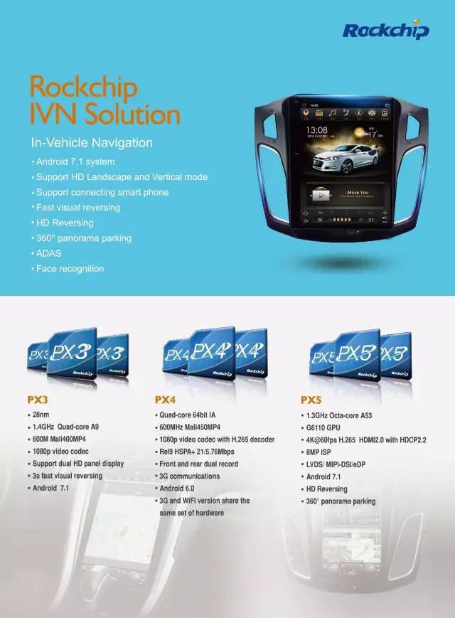 业内率先支持安卓7.1多屏互动,Rockchip PX3平台全新升级,布局智能驾驶舱解决方案
