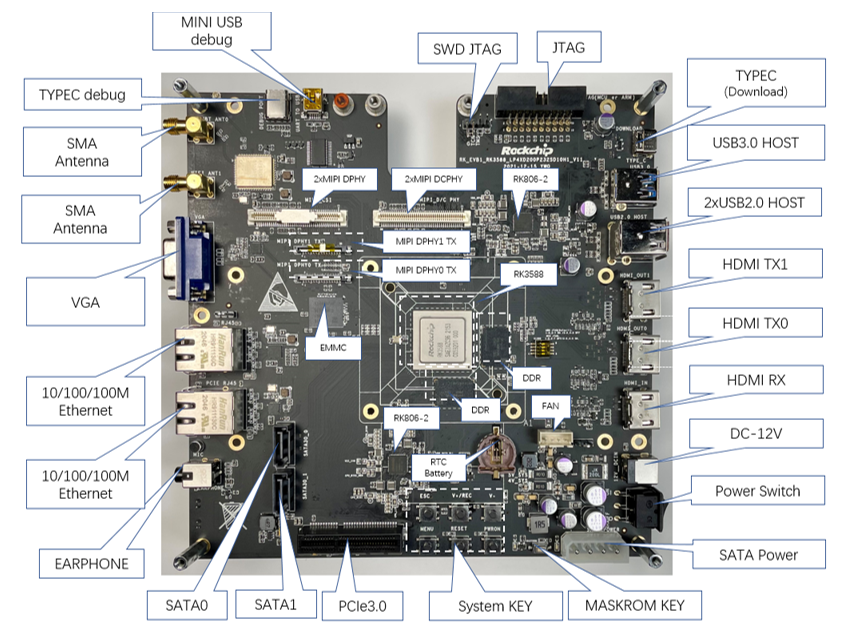 图:RK3588 EVB 功能接口正面分布图