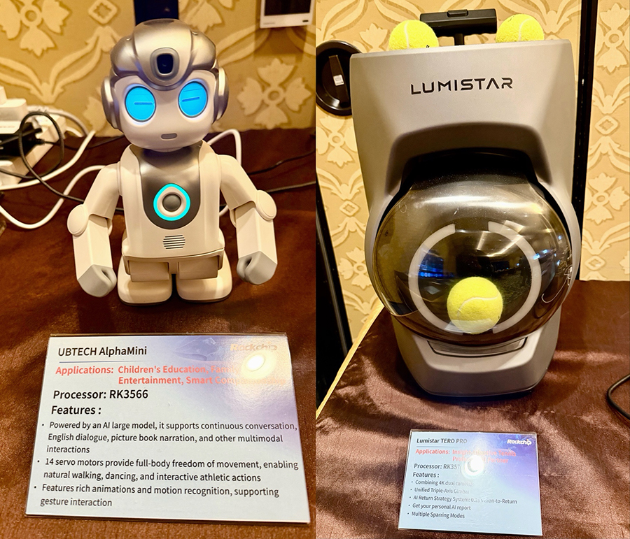 • 机器人:首次在海外展示基于RK3588的机器人开发平台及双目视觉算法,助力客户快速构建从运动控制、视觉感知到智能决策与人机交互的完整机器人系统,具备性能深度优化、核心模块高度集成、开发流程快速上手三大核心优势,支持服务机器人、教育机器人、陪伴机器人等产品的快速开发与场景落地。