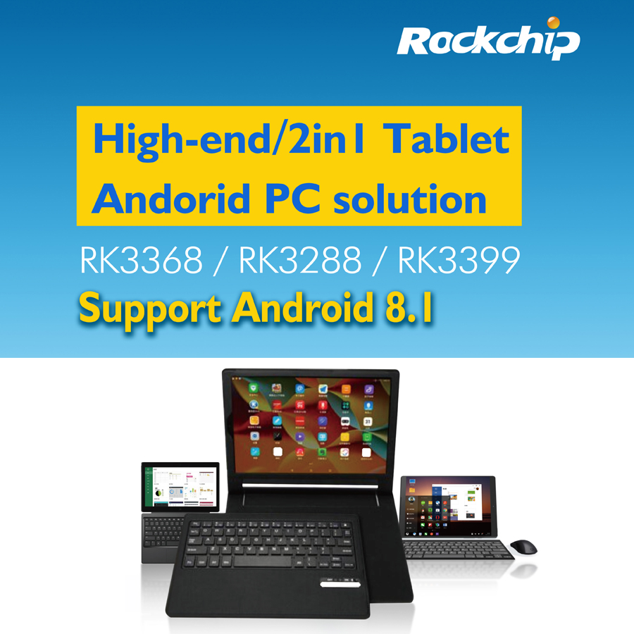 High-end tablet solutions RK3368/RK3288/RK3399, can be applied to the high-end flagship tablet /2in1 tablet / education, finance, medical, game tablet and so on. Some series of Chromebook, Chrome tablet and other Chrome OS products are powered by RK3288/RK3399.